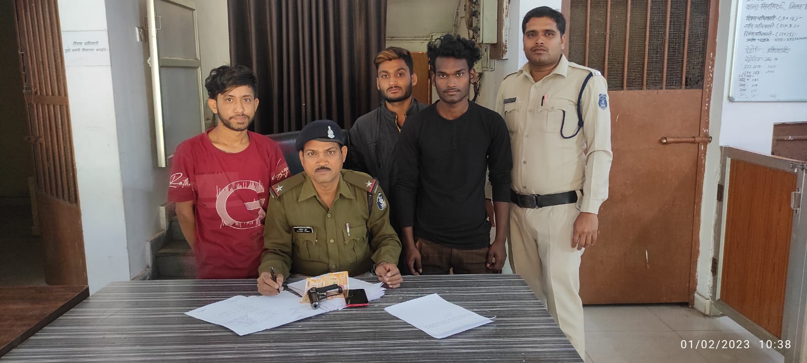 बिलासपुर – लोगों से लूटपाट मारपीट की घटना को अंजाम देने वाले 3 आरोपियों को सिरगिट्टी पुलिस ने गिरफ्तार कर लिया है, जिनसे प्लास्टिक की लाइटर वाली पिस्टल, बेल्ट, बाइक, मोबाइल और लूट की रकम को बरामद किया गया है। गौरतलब है कि 27 जनवरी को प्रार्थी सूर्यकांत मलिक पिता प्रशांत कुमार मलिक उम्र 21 वर्ष निवासी गोविन्द नगर सिरगिट्टी से बाइक में सवार 3 लोगों ने पिस्टल अड़ाकर मोबाइल और पैसों की लूट को अंजाम दिया था, जिन्होंने प्रार्थी और उसमें दोस्त से मारपीट भी की थी, घटना से भयभीत प्रार्थी ने जिसकी शिकायत 31 जनवरी को थाने में की थी, मामले को गंभीरता से लेते हुए सिरगिट्टी पुलिस आरोपियों की तलाश में जुट गई, इसी क्रम मे गोविन्द नगर सुनसान जगह पर तीन व्यक्ति बाइक मे घूमते मिले जो पुलिस को देखकर भागने का प्रयास करने लगे